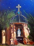 2013Tijdens de 1 ste break, waar een prachtige tuin was, met aan het eind van een pad, een mariakapelleke, kwam ik op het idee, om dit op doek vast te leggen.