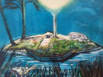 2010het graveneiland in de Warande in Helmond, op mijn manier geschilderd, dit eiland heeft een mystieke uitstraling, je voelt hier een enorme rust .